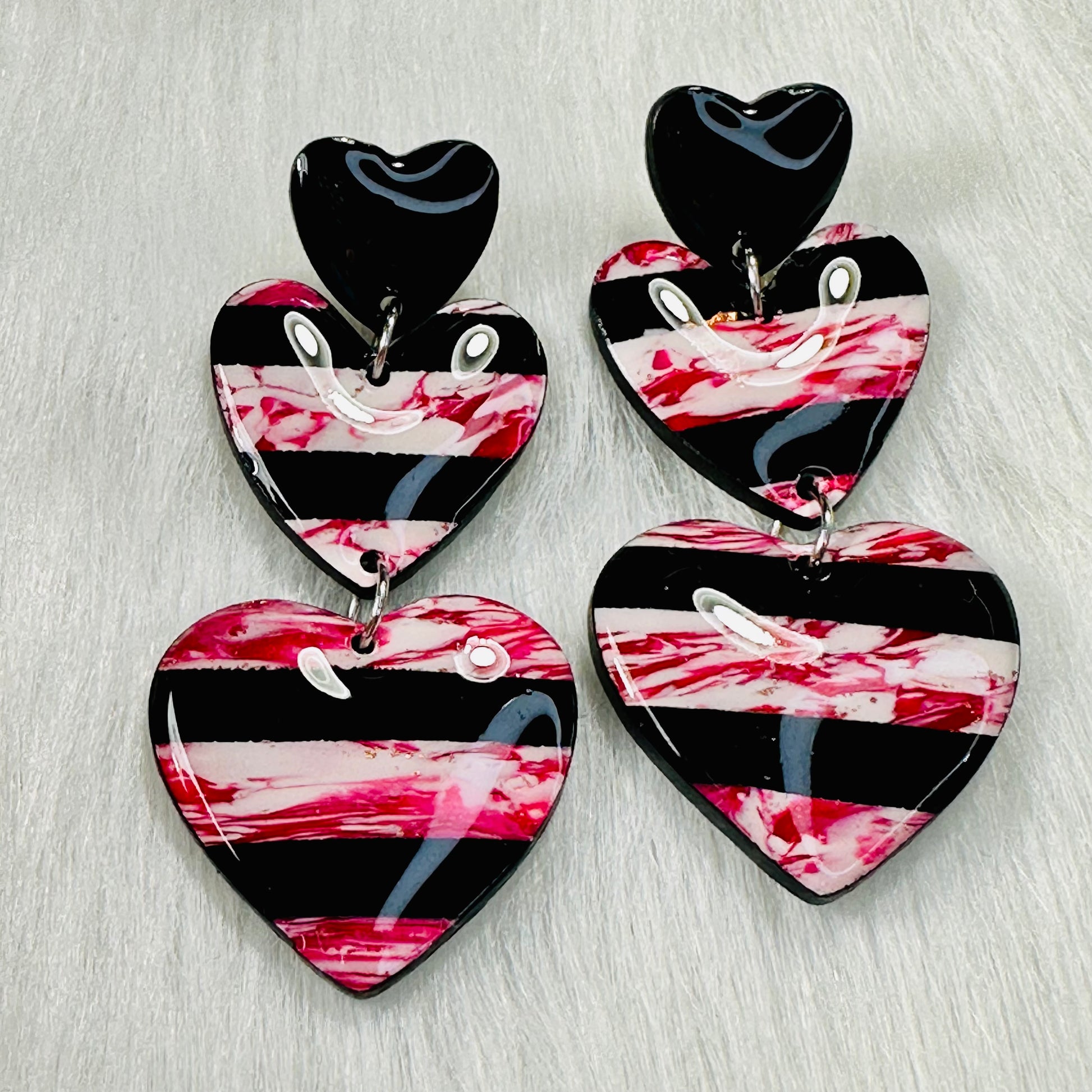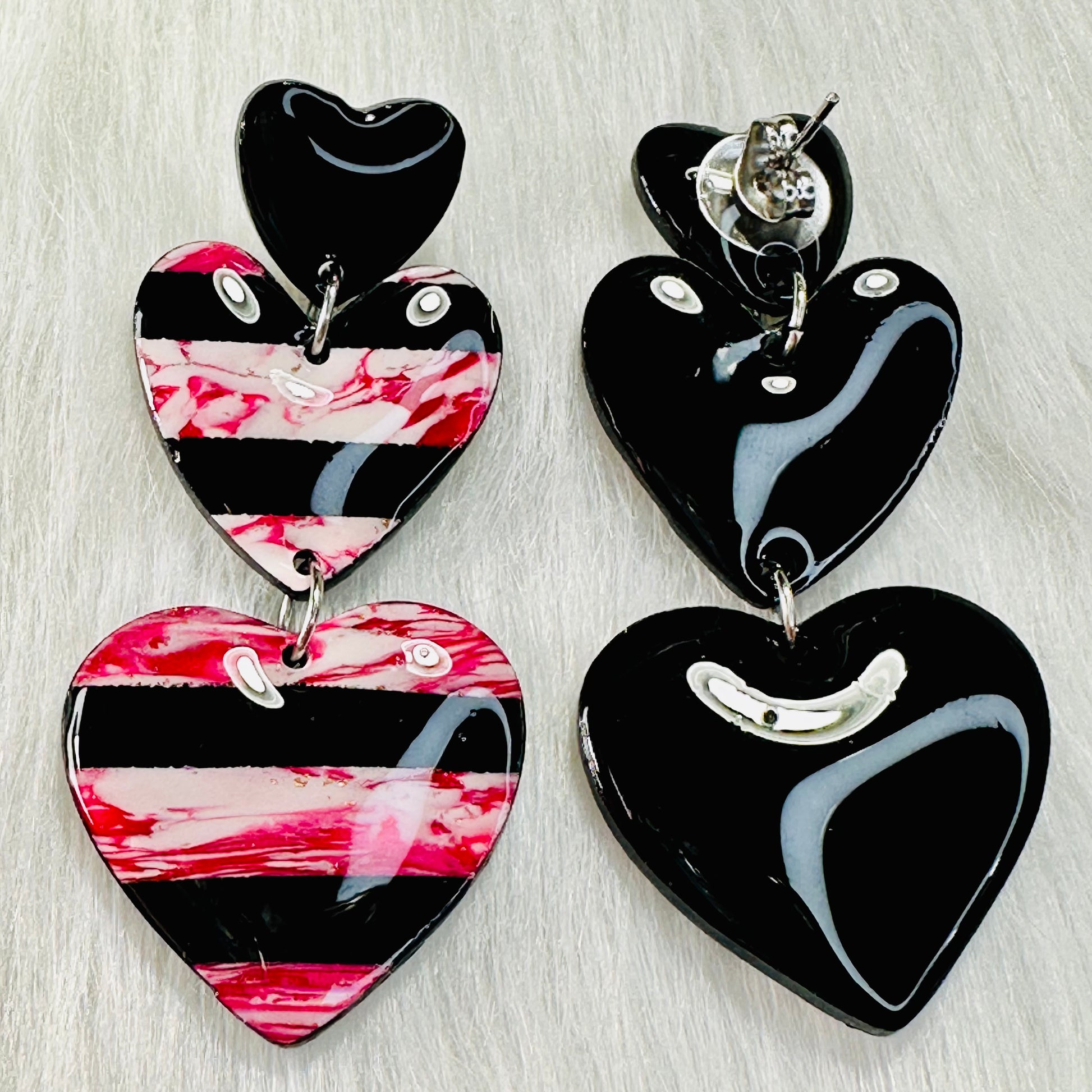 Bold and romantic, our Black & Red Heart Statement Earrings are the perfect blend of edgy and elegant. Handcrafted from premium polymer clay, these heart-shaped earrings feature a striking contrast of black and red, making them a standout accessory for any occasion.