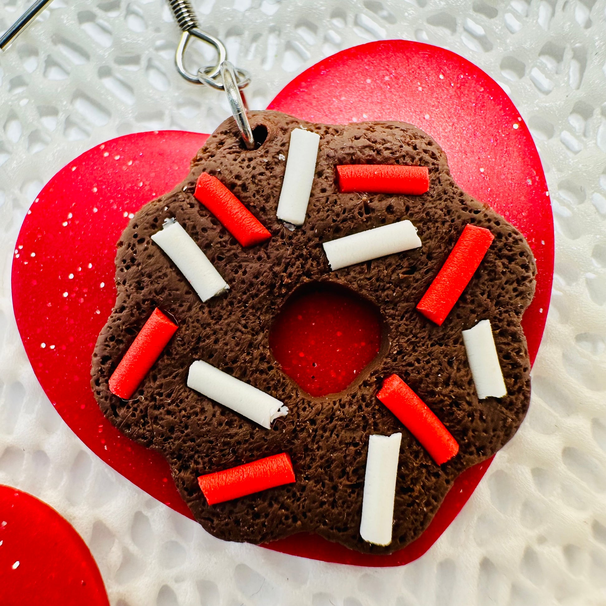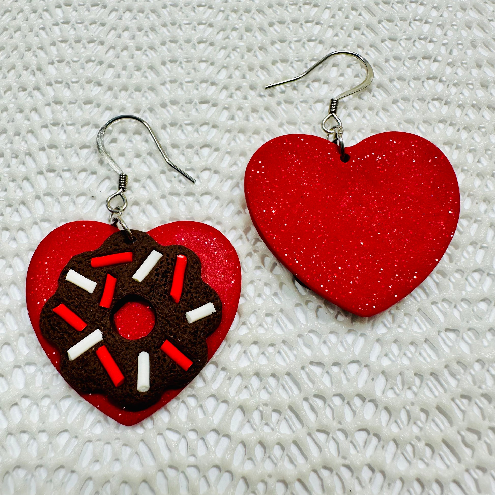 Indulge in sweet style with our Brownie Heart Cookie Sprinkle Earrings, a playful and delectable accessory for dessert lovers and fashion enthusiasts alike. These heart-shaped earrings are handcrafted from polymer clay, featuring a charming cookie design with sprinkles and a touch of glitter for extra sparkle. The rich red and brownie colors evoke the look of a freshly baked treat, making them irresistibly cute and unique.