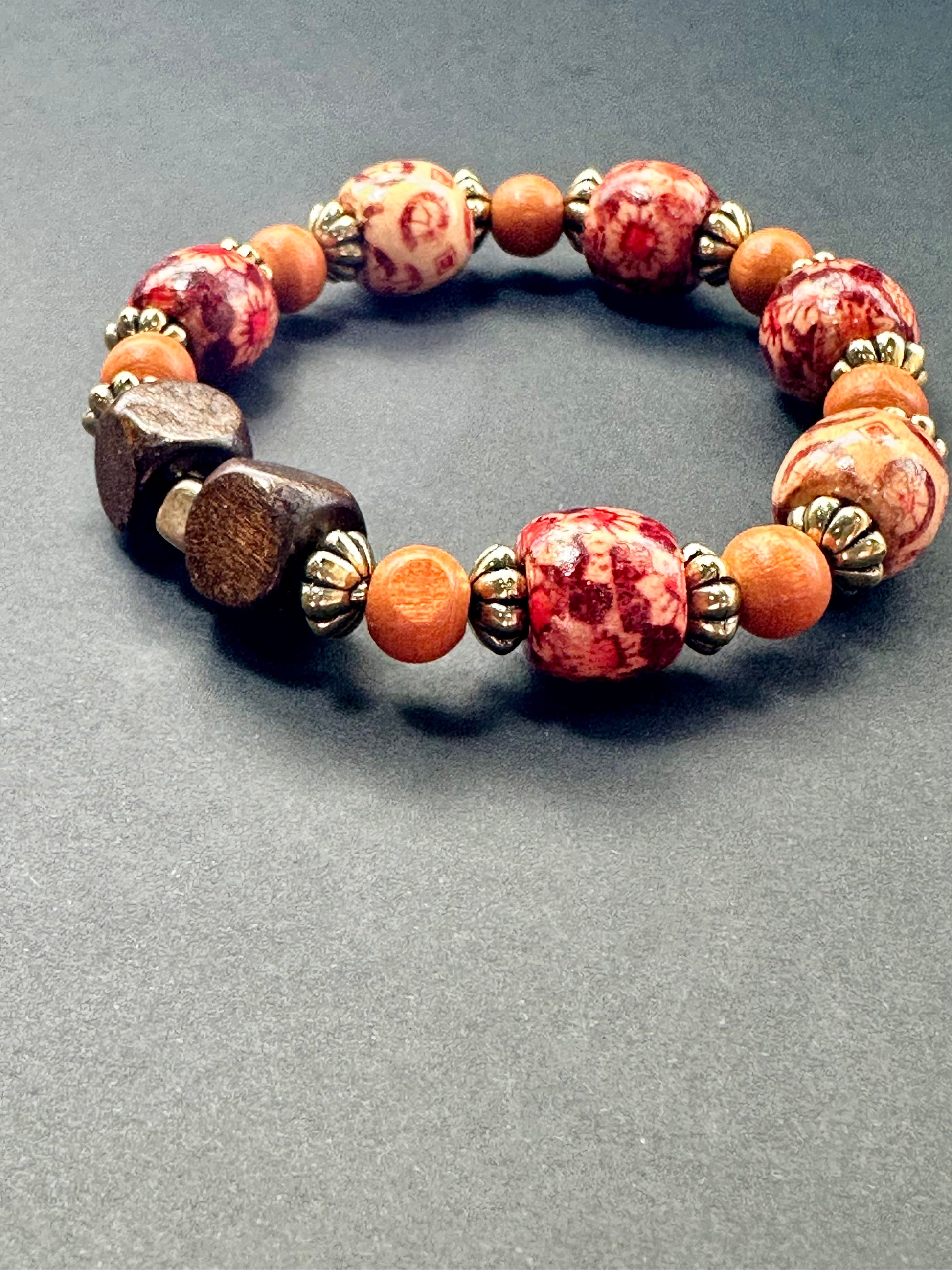 Say hello to The Campfire Companion, the handmade men’s bracelet that’s basically a campfire for your wrist—minus the smoke and marshmallows. Featuring natural-colored and red wooden beads with metal spacers on a stretchy 8-inch band, it’s comfortable, rugged, and low-maintenance.