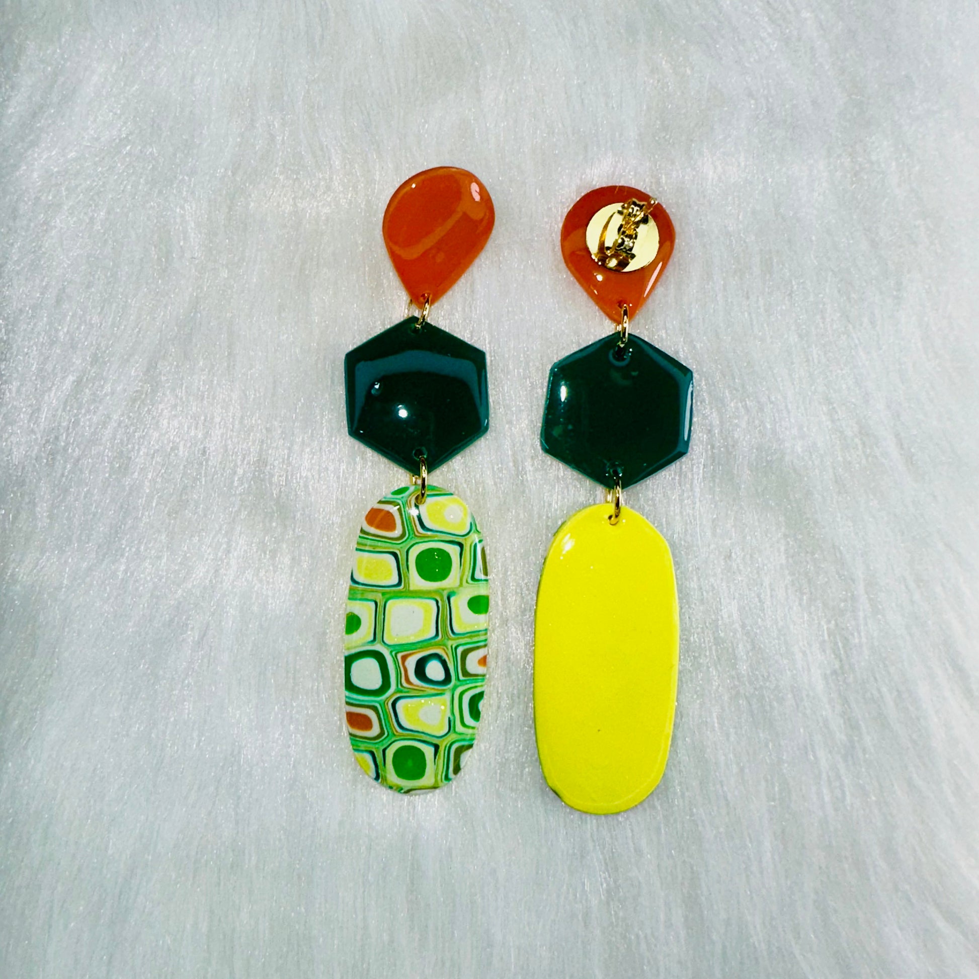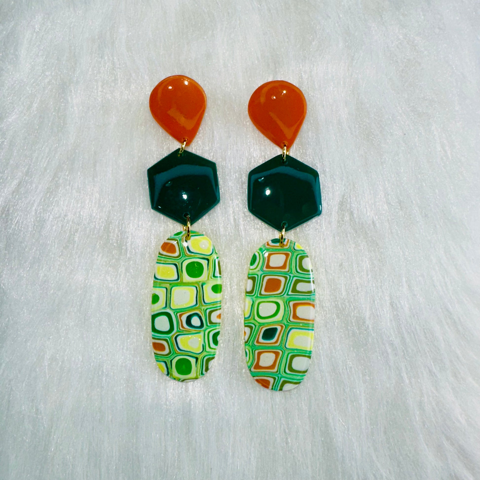 Add a pop of playful elegance to your accessory game with our Citrus Grove Trio Dangle Earrings from Vanessa Lee Clay Jewelry. These handcrafted beauties feature three sculpted segments of polymer clay in a refreshing green and vibrant orange palette—bringing bold color with an artful twist.