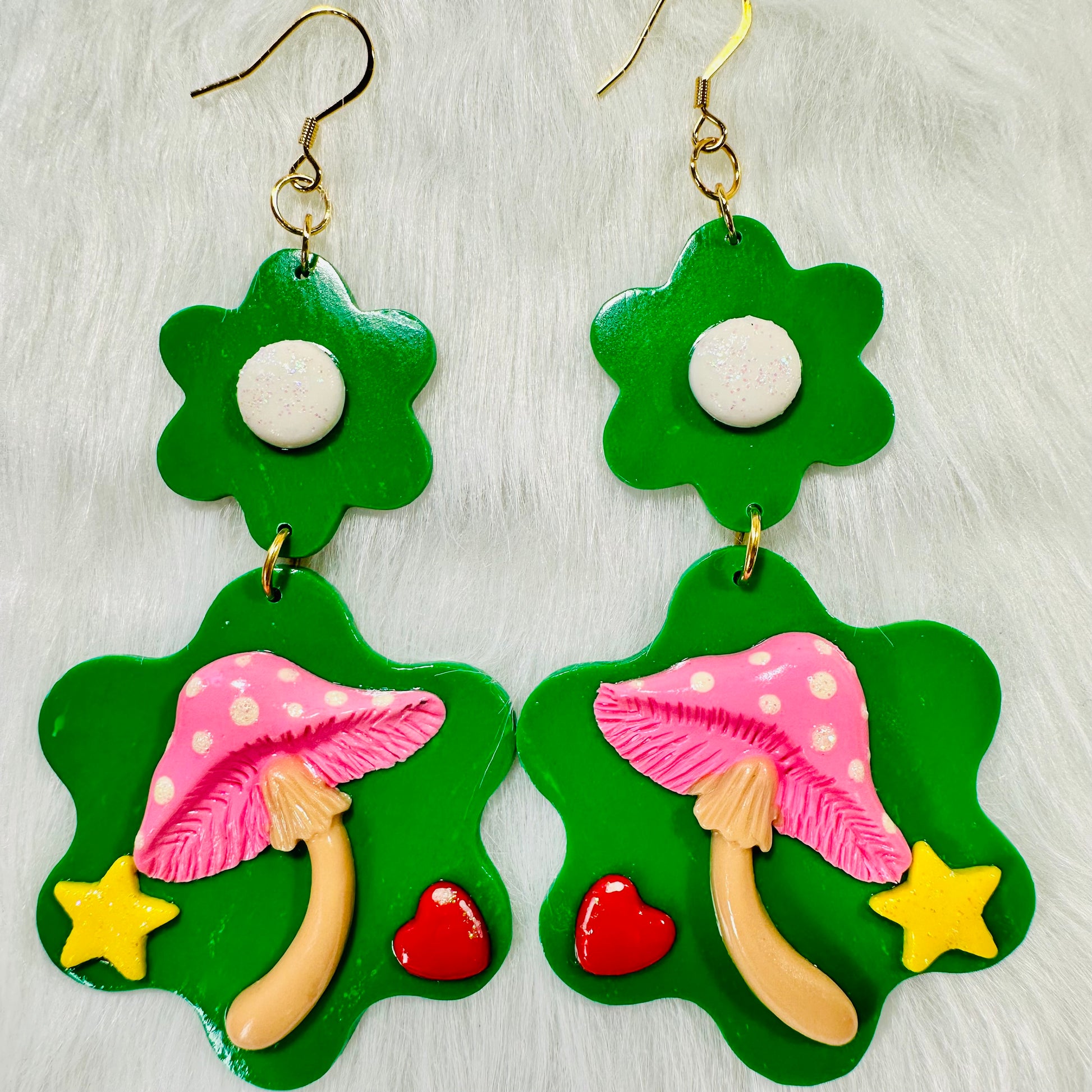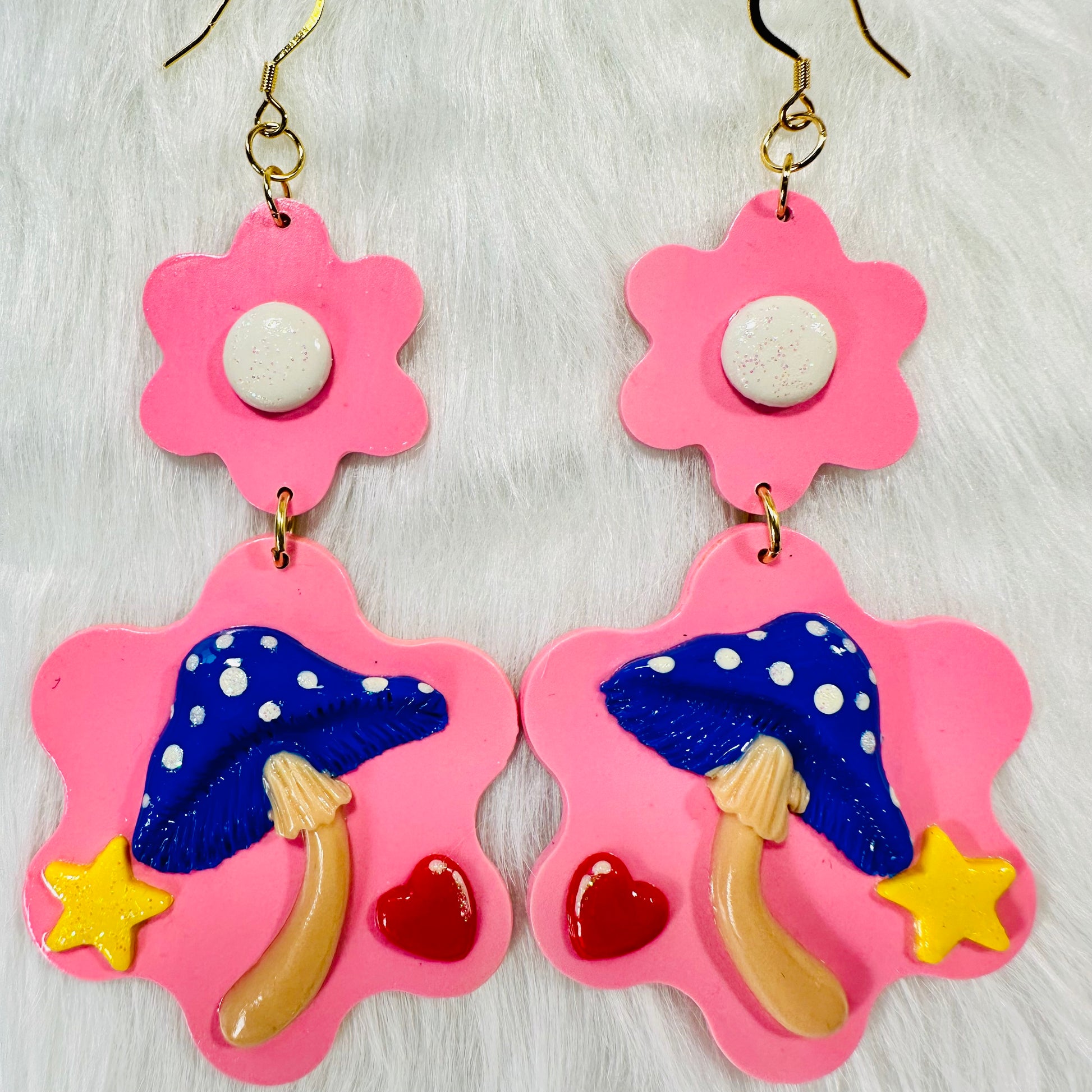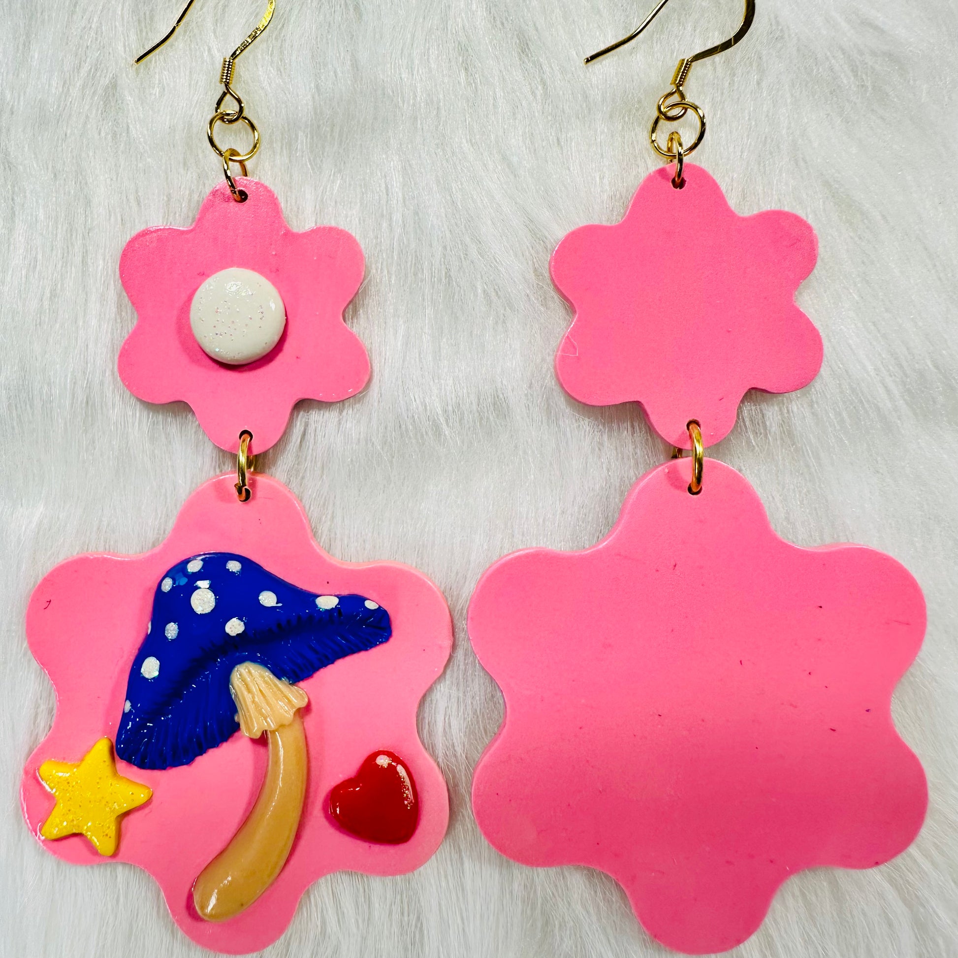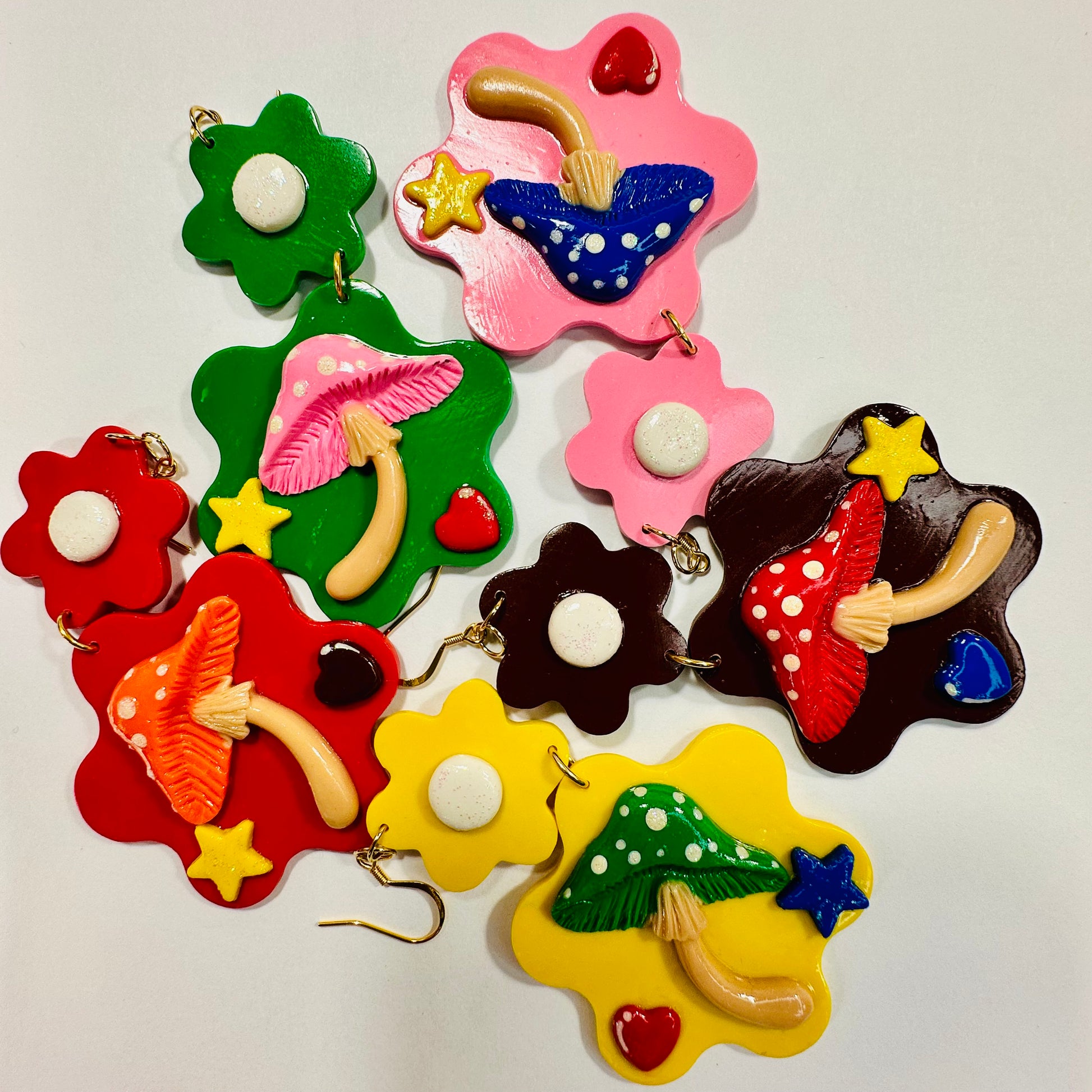 Step into a world of whimsy with our Fairy Mushroom Flower Rainbow Earrings, handcrafted from premium polymer clay. These enchanting dangle earrings feature intricate fairy mushroom and flower designs, brought to life with vibrant rainbow hues that add a pop of color to any outfit.