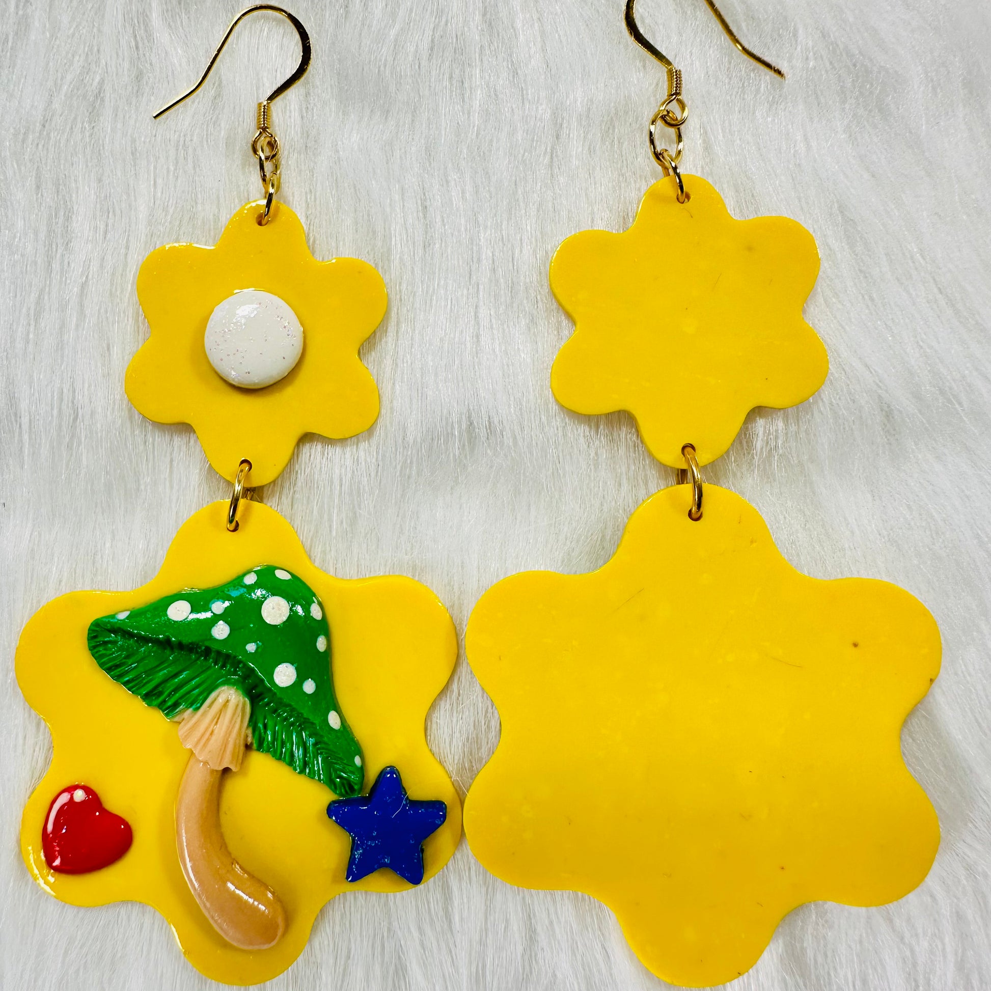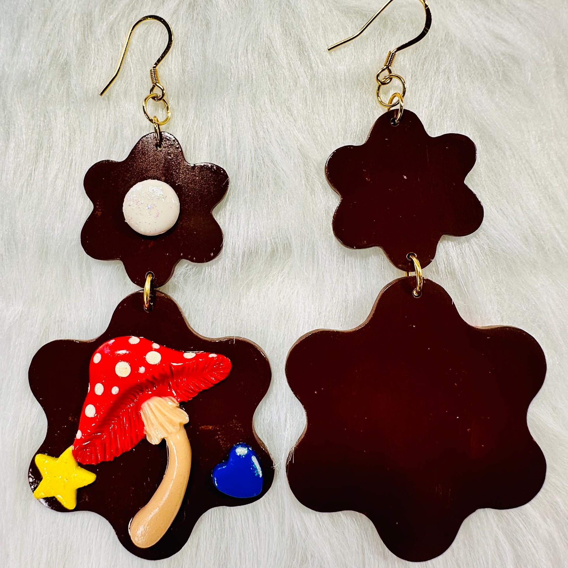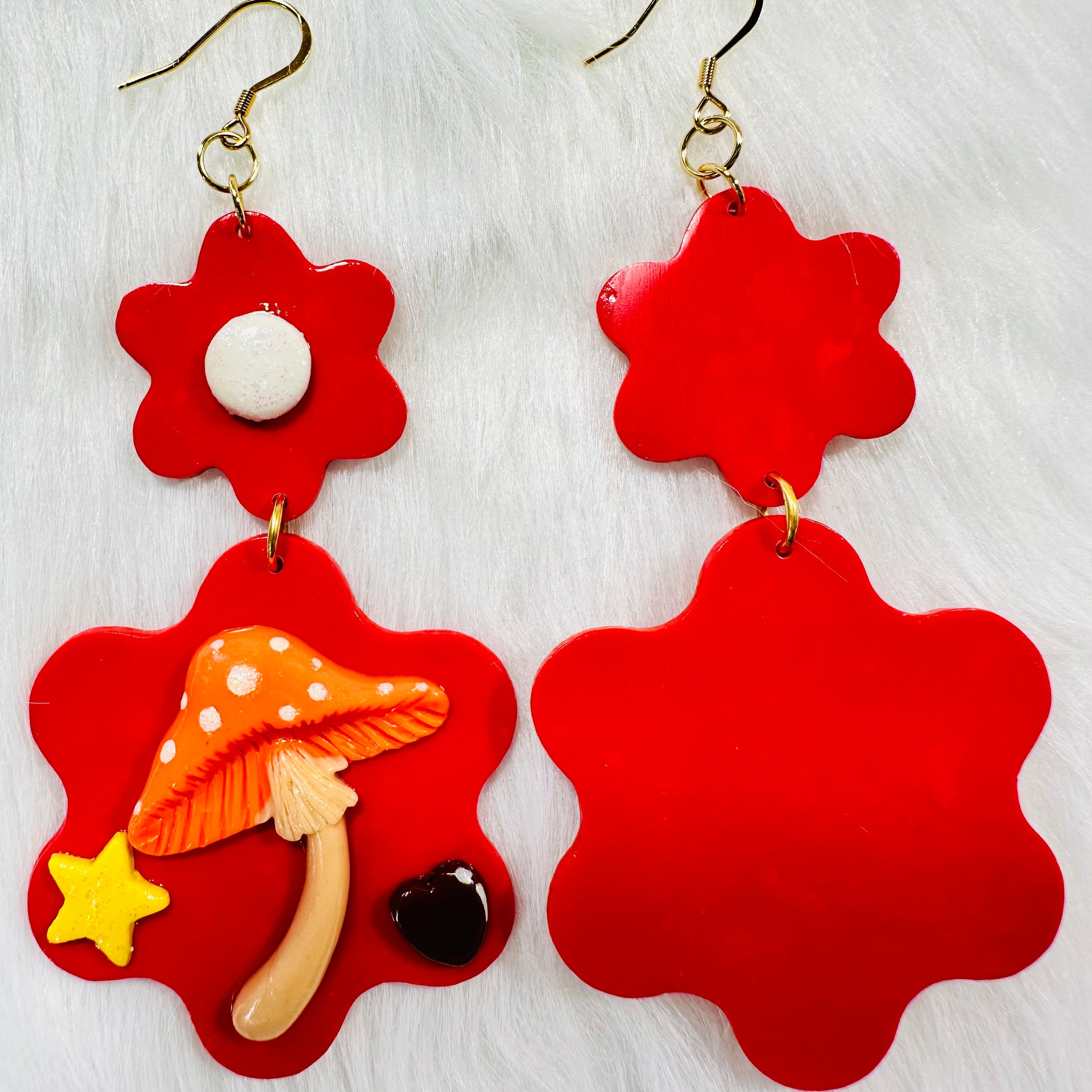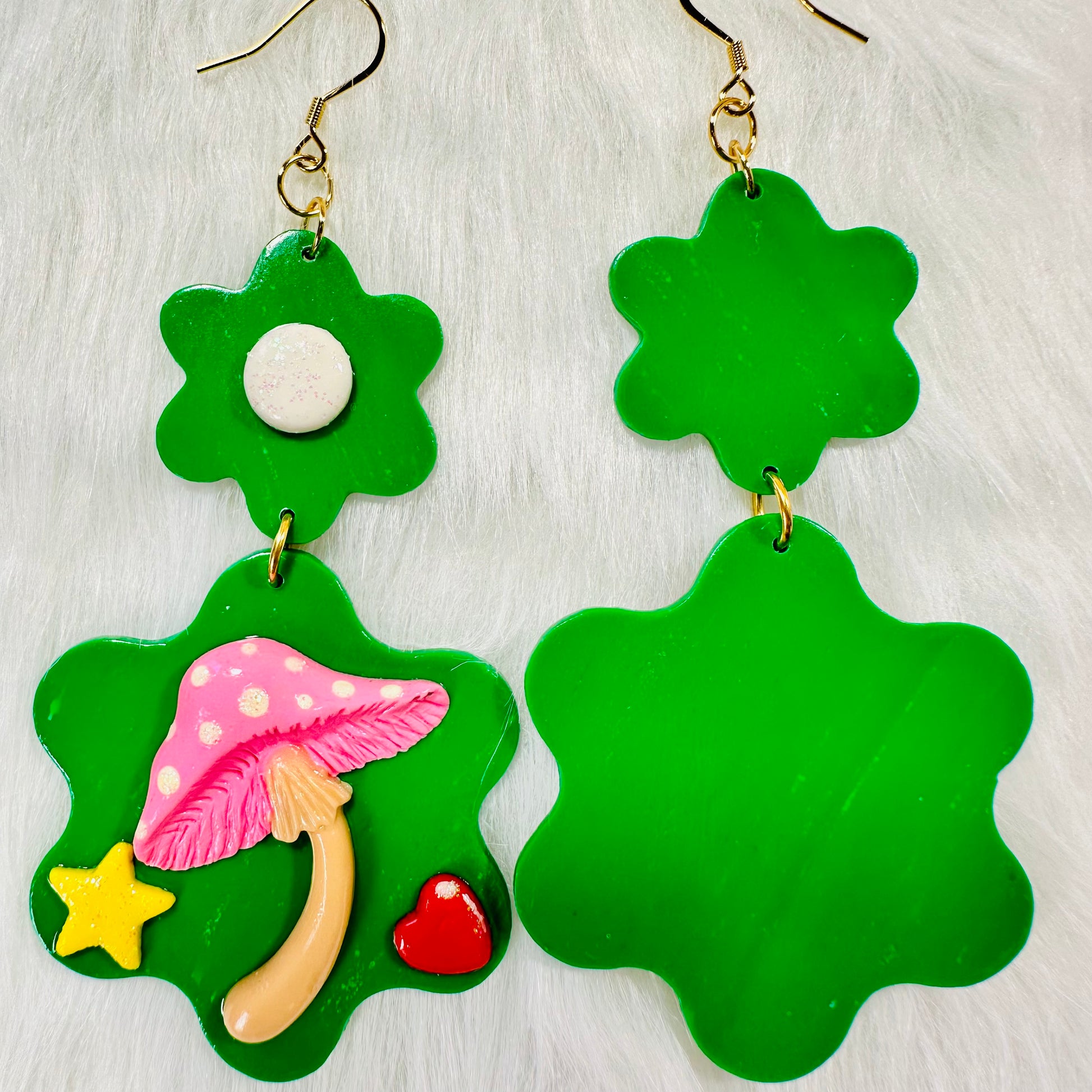 Step into a world of whimsy with our Fairy Mushroom Flower Rainbow Earrings, handcrafted from premium polymer clay. These enchanting dangle earrings feature intricate fairy mushroom and flower designs, brought to life with vibrant rainbow hues that add a pop of color to any outfit.