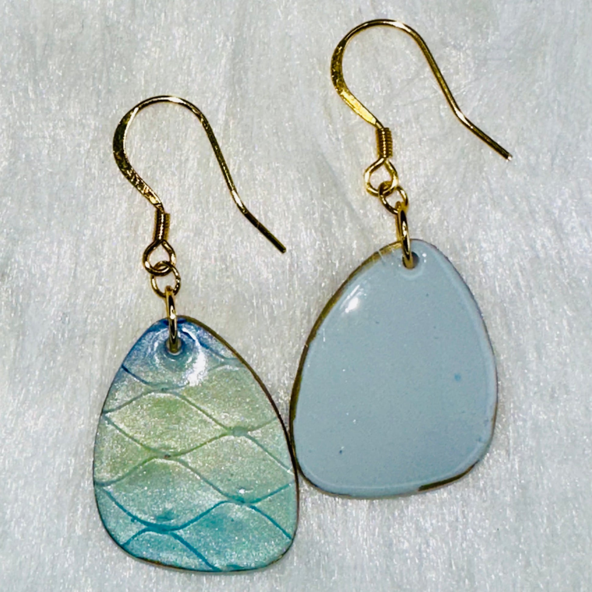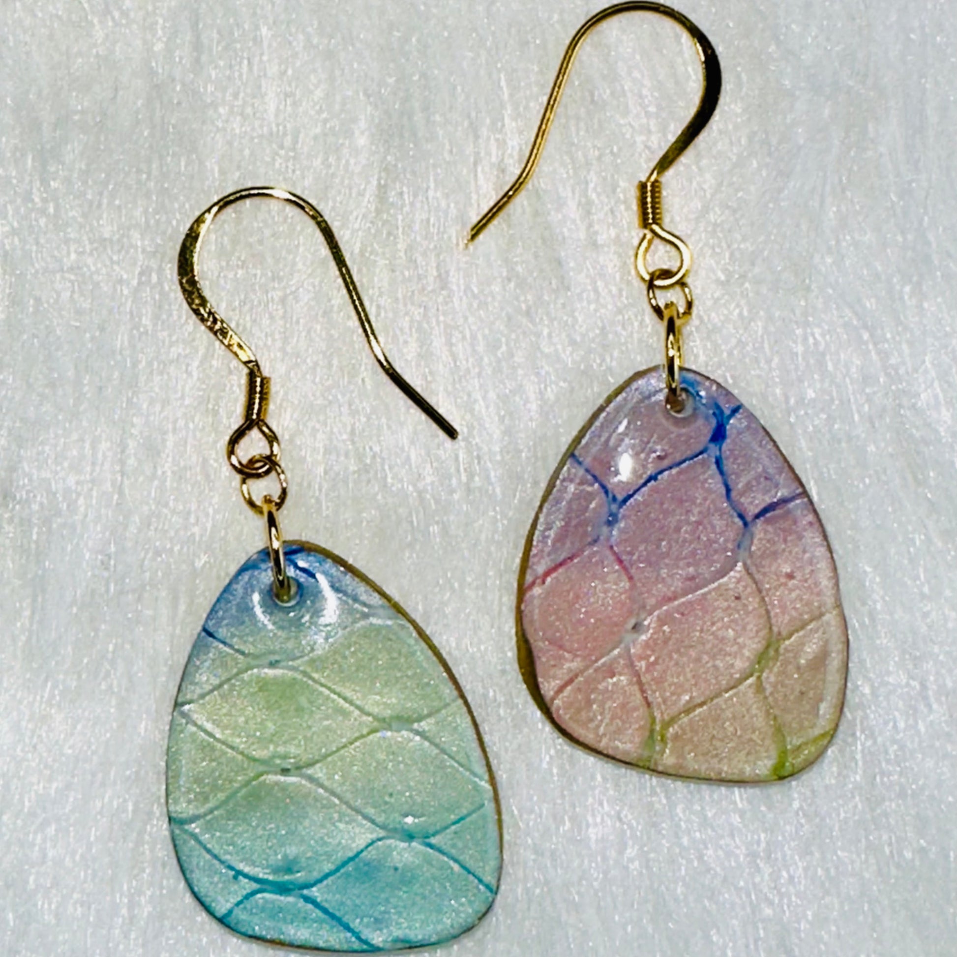 Dive into whimsical charm with our Mermaid Dreams Mini Dangles from Vanessa Lee Clay Jewelry. These petite earrings feature a shimmering mermaid scale design handcrafted from polymer clay in a magical mix of purple, pink, blue, and green—capturing the essence of ocean fantasy in every detail.