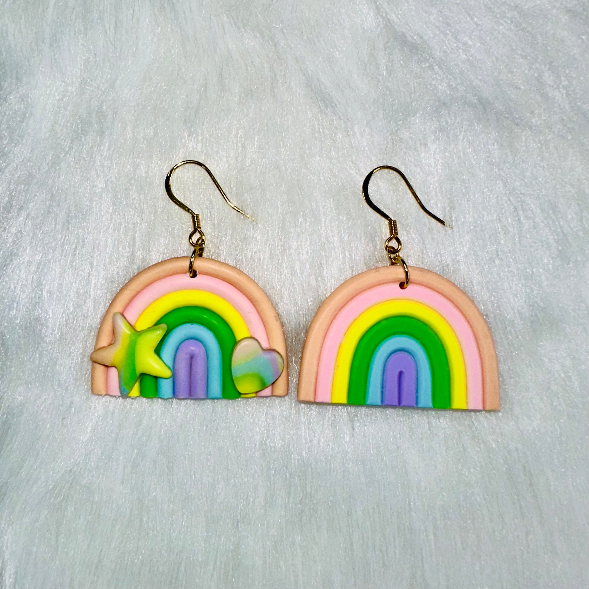 Bring a burst of playful color to your day with our Pastel Joy Dangle Earrings from Vanessa Lee Clay Jewelry. These whimsical earrings are handcrafted from polymer clay in soft pastel rainbow hues and feature a charming mix of rainbow, star, and heart shapes—each one radiating sweetness and good vibes.