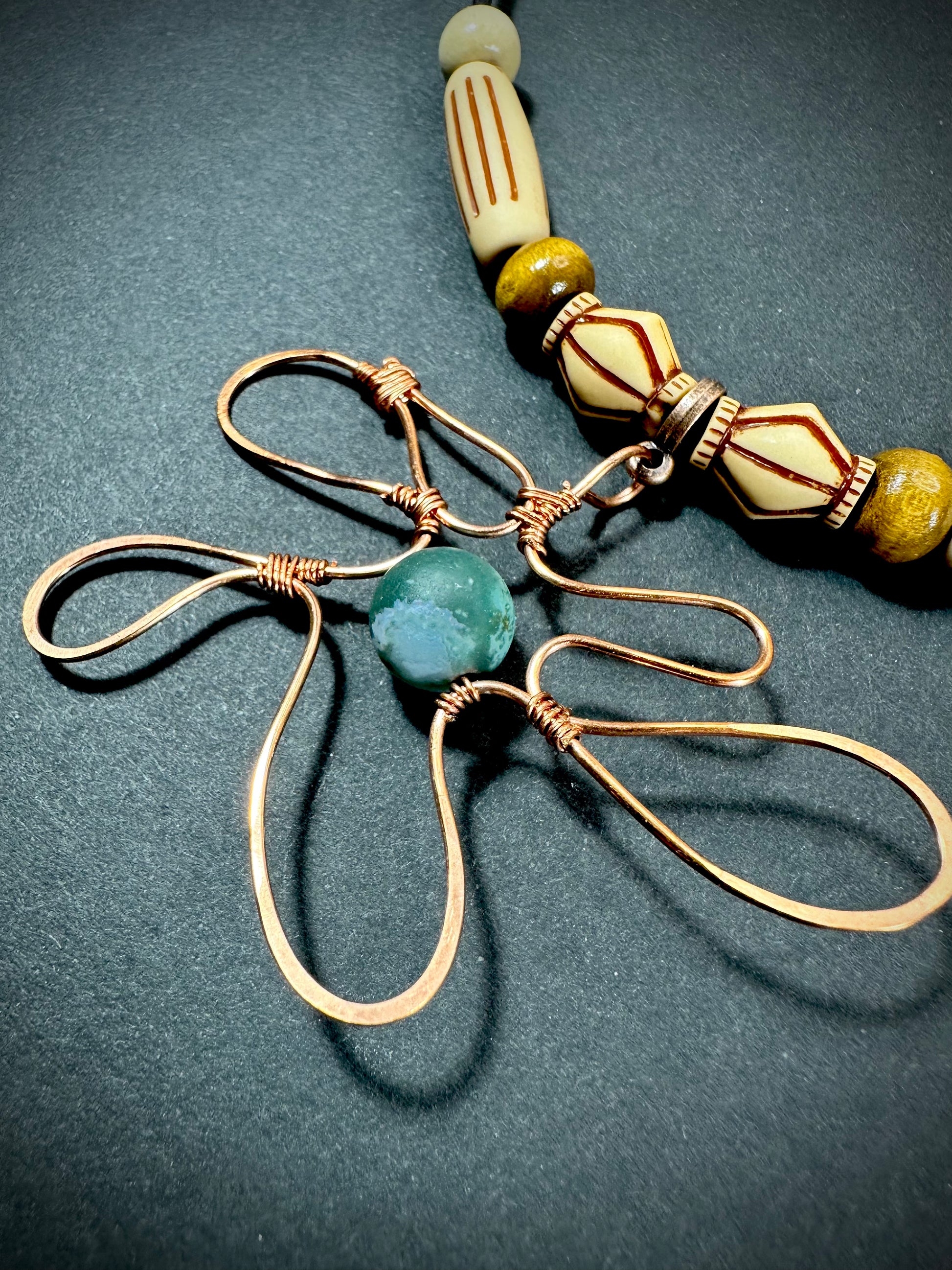 Turn heads and raise eyebrows with Petal to the Metal, a handmade men’s necklace that’s as bold as it is playful. Featuring an antique copper wire and stone bead abstract flower pendant accented with wood beads on a durable leather cord, it’s a rugged, artsy statement piece for guys who like a little floral flair without looking like they raided a garden shop.