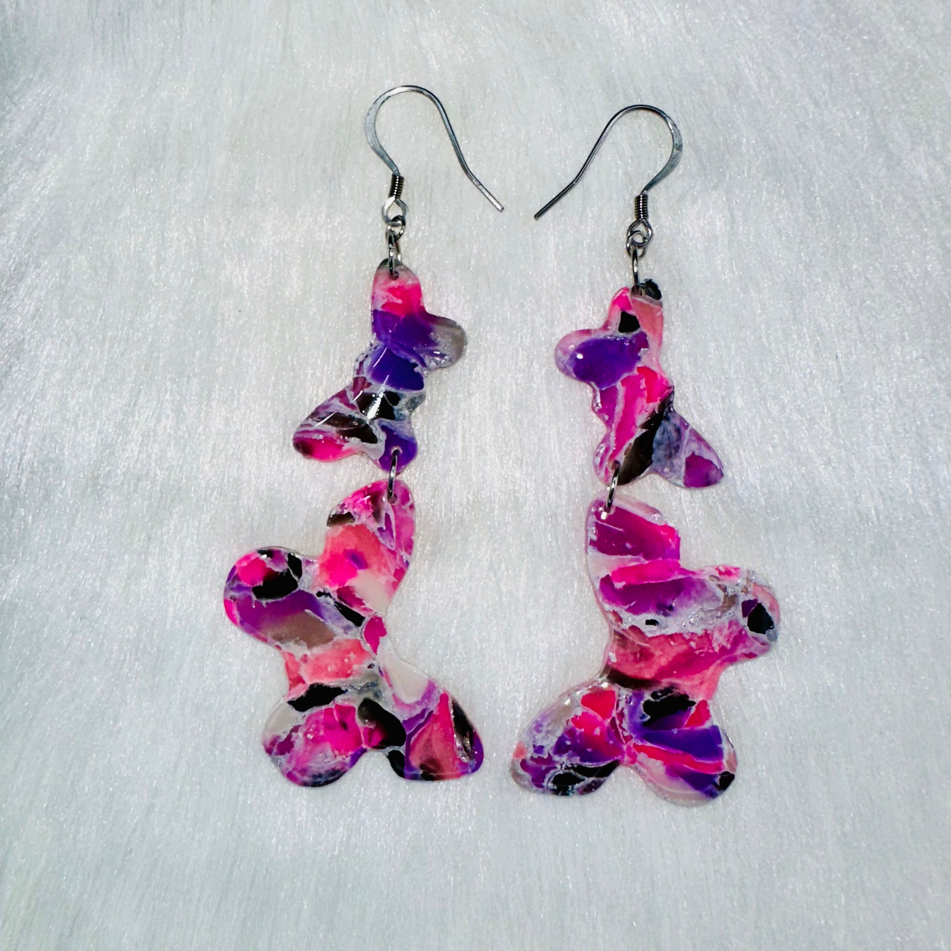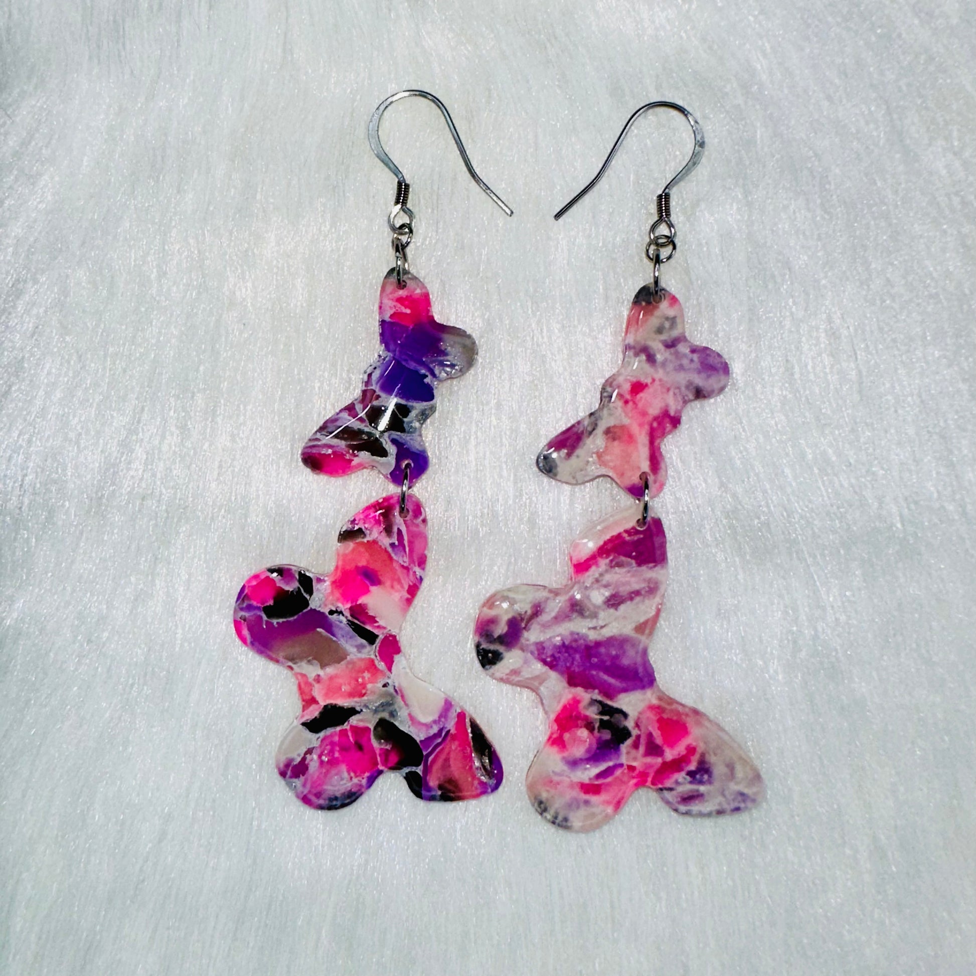 Each piece is finished with a high-gloss UV resin coating, adding durability and a luminous shine. Hanging from hypoallergenic stainless steel fish hooks, they’re as comfortable as they are eye-catching. Measuring approximately 2.25 inches long by 1.25 inches wide, these lightweight earrings bring a playful yet elegant statement to any outfit.