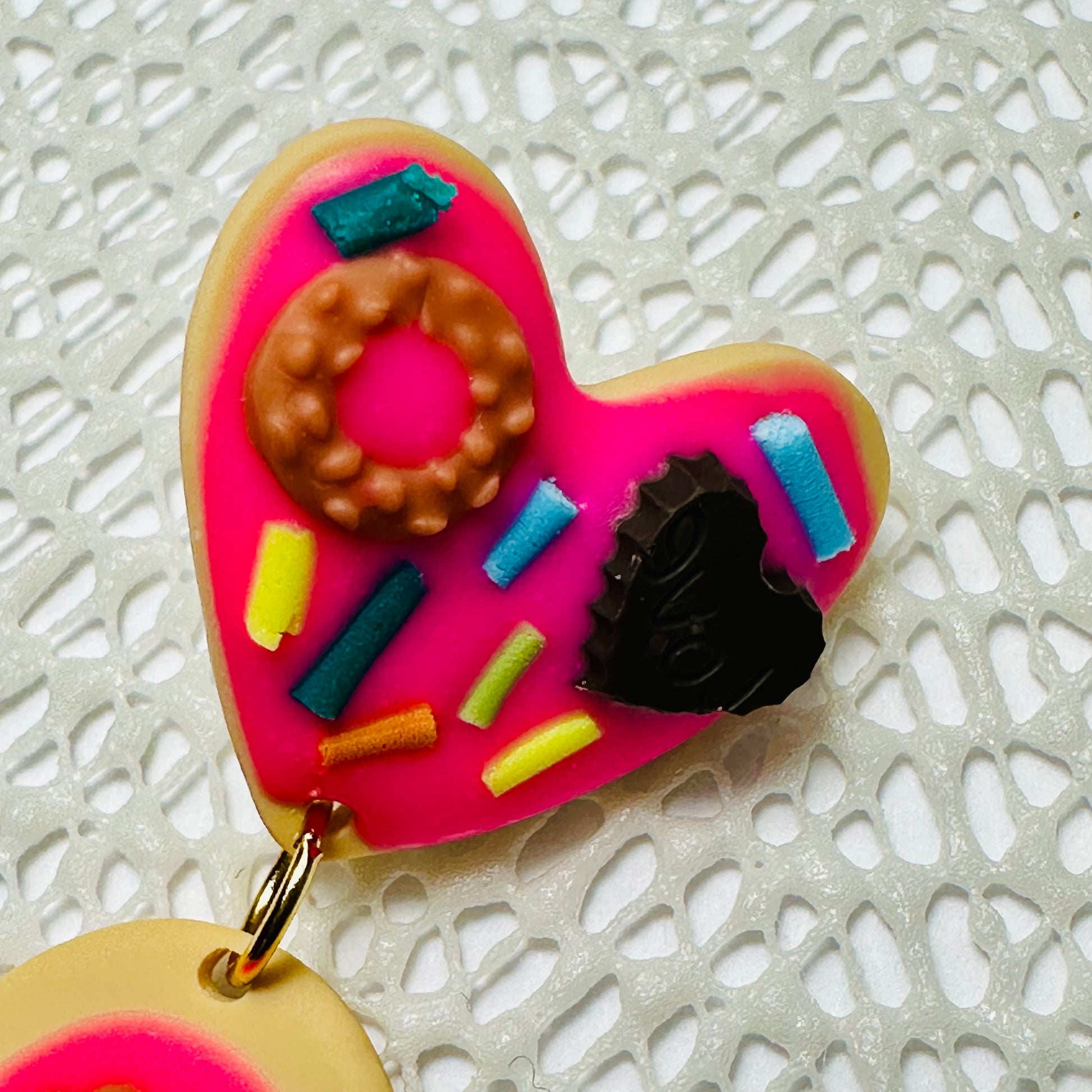 Satisfy your style cravings with our Sweetheart Cookie Dessert Earrings, a delightful mix of playful charm and artistic craftsmanship. Handcrafted from polymer clay, these earrings feature heart, cookie, frosting, and sprinkle shapes, bringing a whimsical dessert-inspired design to life. The vibrant red, pink, dark chocolate and beige color palette adds a touch of sweetness, making them perfect for festive occasions or adding a fun twist to your everyday look.