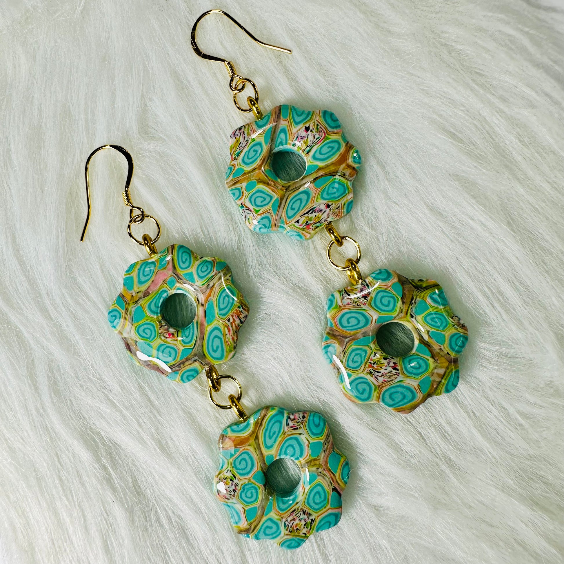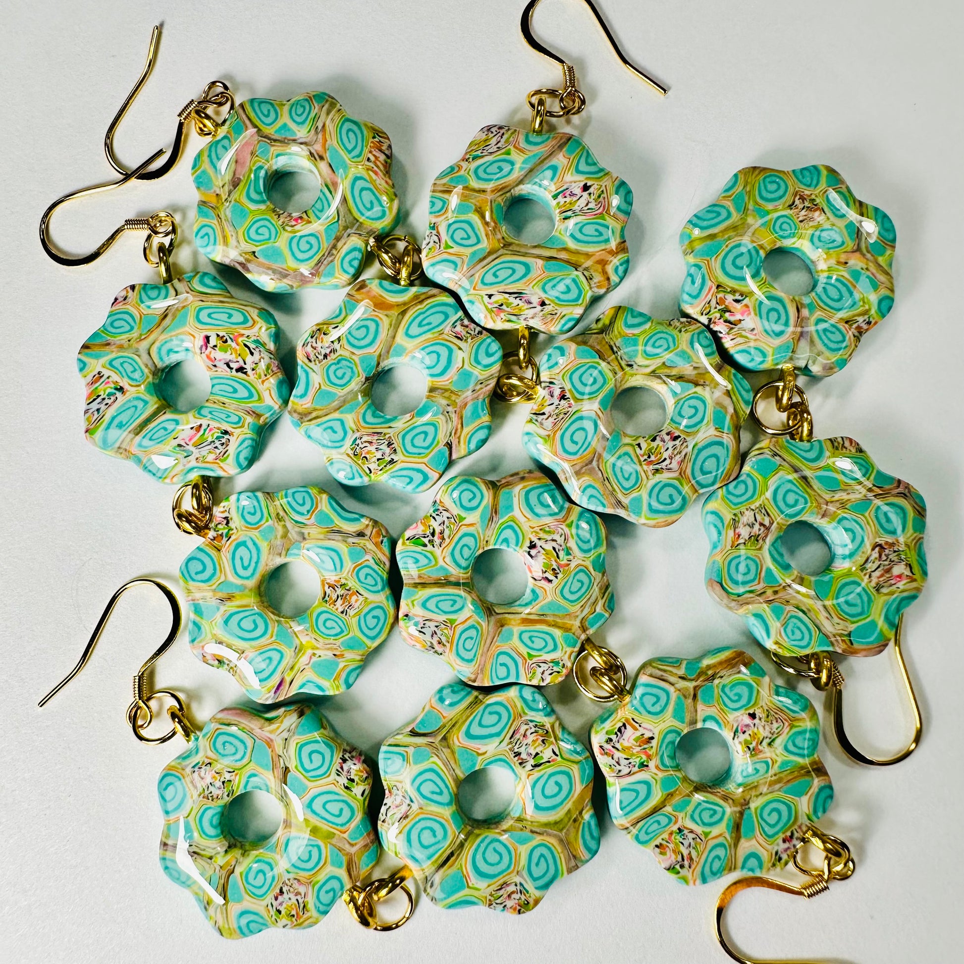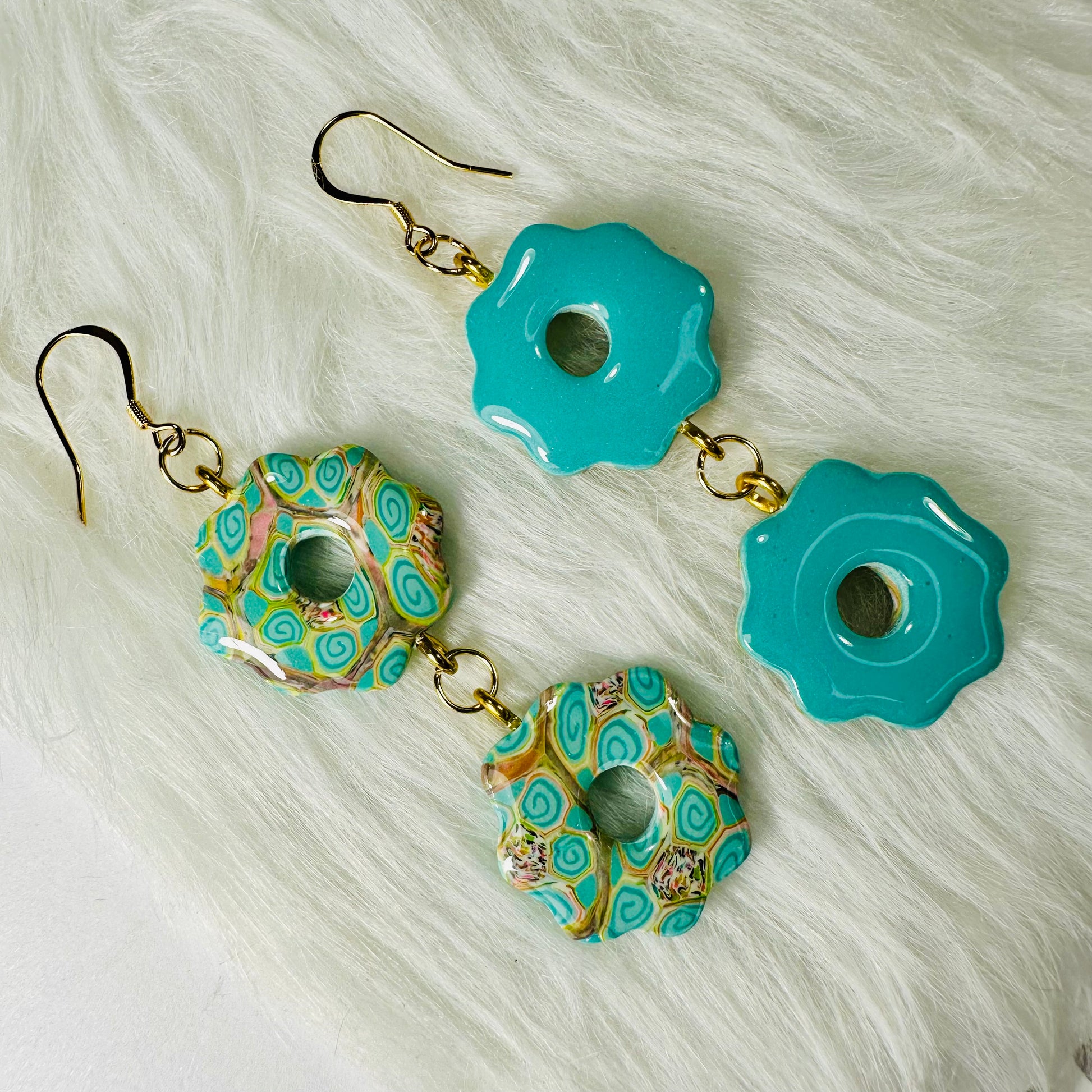 Introducing our Turquoise Flower Design Polymer Clay Earrings, a striking accessory that captures the essence of vibrant elegance. Crafted from scrap polymer clay, these earrings feature a stunning turquoise color and a unique floral design, making each pair a one-of-a-kind piece.